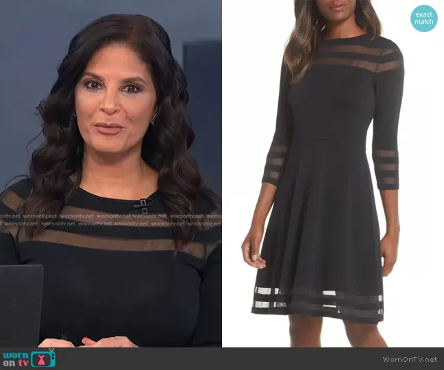 Darlene Rodriguez on Today on NBC was spotted wearing this black mesh stripe inset dress on Today on Feb 05 2024's episode. Darlene's Dress is the Illusion Stripe Sweater Dress by Eliza J.