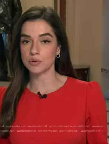 Julie Tsirkin on NBC News Daily on NBC was spotted wearing this red long sleeve midi dress on NBC News Daily on Feb 09 2024's episode. Julie's Dress is the Knit Crepe Dress by Tory Burch.