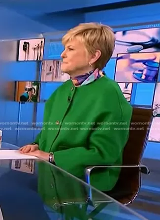 on NBC News Daily on NBC was spotted wearing this Anne Thompson’s green jacket on NBC News Daily on Feb 09 2024's episode. 's Jacket is the Double-Faced Wool Straight Coat by Carolina Herrera.