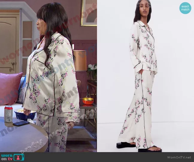 Paulina Price (played by Jackée Harry) on Days of our Lives on Peacock was spotted wearing this white floral pajamas on Days of our Lives on Feb 12 2024's episode. Paulina's Top is the Printed Piped Shirt by Zara . Paulina's Pants is the Printed Piped Pants by Zara.