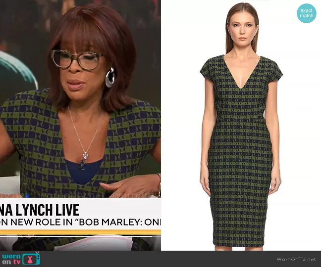 Gayle King on CBS Mornings on CBS was spotted wearing this olive and navy geometric print dress on CBS Mornings on Mar 25 2025's episode. Gayle's Dress is the Printed Sheath Dress by Victoria Beckham .