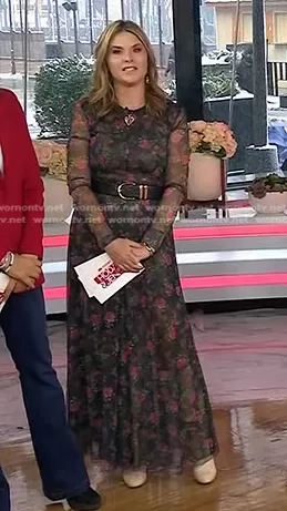 Jenna Bush Hager on Today on NBC was spotted wearing this Jenna’s black floral maxi dress on Today on Feb 13 2024's episode. Jenna's Dress is the All-Over Floral-Print Dress by Philosophy Di Lorenzo Serafini.