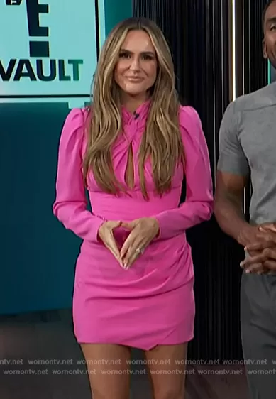 Keltie Knight on E! News on E! was spotted wearing this pink twist front dress on E! News on Feb 16 2024's episode. Keltie's Dress is the Crystal-embellished twist-front crepe mini dress by Self Portrait.