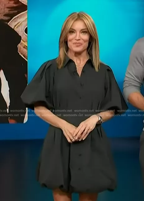 Kit Hoover on Access Hollywood on NBC was spotted wearing this black puff sleeve mini dress on Access Hollywood on Feb 20 2024's episode. Kit's Dress is the Cleo Pleated Poplin Balloon Minidress by Simkhai.