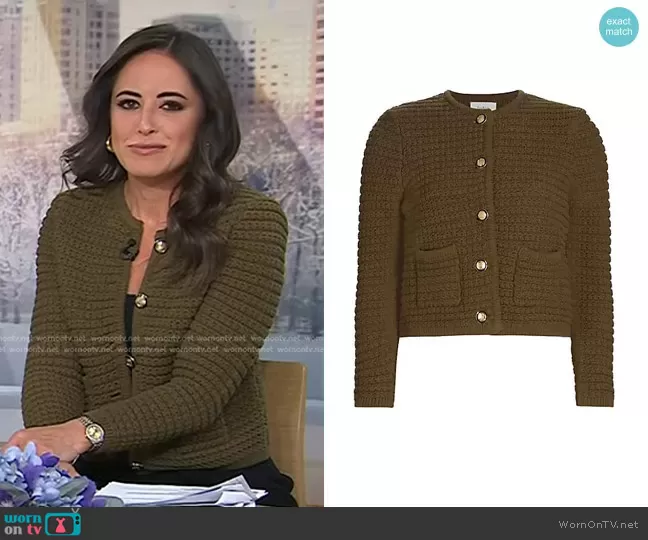 Kaylee Hartung on Today on NBC was spotted wearing this green cardigan on Today on Feb 21 2024's episode. Kaylee's Sweater is the Gaspard Pearl-Knitted Cardigan in Khaki by Ba&Sh.