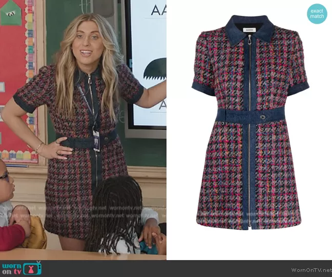 (played by Sabrina Brier) on Abbott Elementary on ABC was spotted wearing this tweed mini dress on Abbott Elementary on episode 'Smoking' (3x04) in Feb 2024. 's Dress is the Tweed denim-trimmed minidress by Sandro.