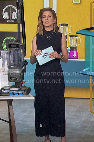Natalie Morales on The Talk on CBS was spotted wearing this navy knit midi dress on The Talk on Feb 22 2024's episode. Natalie's Dress is the Glacier Dress by Staud.