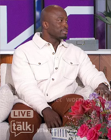 Akbar Gbajabiamila on The Talk on CBS was spotted wearing this white fleece shirt jacket on The Talk on Feb 22 2024's episode. Akbar's Jacket is the Pile Fleece Overshirt by Polo Ralph Lauren . Akbar's Shoes is the Cosmic Unity 3 Shoes in Melon Tint/Campfire Orange/Bright Mandarin/Coconut Milk by Nike.
