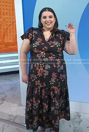 on Today on NBC was spotted wearing this black floral dress on Today on Feb 22 2024's episode. 's Dress is the Scarlett Dress in Lune by Ulla Johnson.