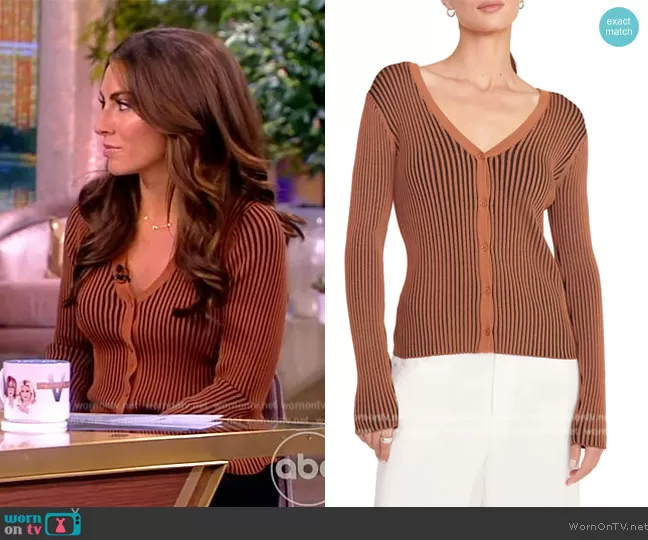 Alyssa Farah Griffin on The View on ABC was spotted wearing this brown ribbed cardigan on The View on Feb 22 2024's episode. Alyssa's Sweater is the Fitted Rib-Knit Cardigan by Staud.