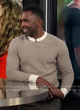 Justin Sylvester on E! News on E! was spotted wearing this beige contrast stripe sweater on E! News on Feb 23 2024's episode. Justin's Sweater is the Nimone Wool Sweater by Boss.