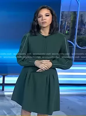 Laura Jarrett on Today on NBC was spotted wearing this green long sleeve mini dress on Today on Feb 23 2024's episode. Laura's Dress is the Seamed Long-Sleeve Mini Dress by Lela Rose.