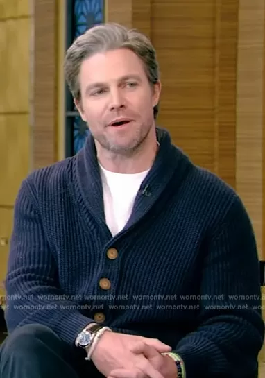 Kelly Ripa on Live with Kelly and Mark on Disney ABC Home Entertainment was spotted wearing this blue knit cardigan on Live with Kelly and Mark on Feb 26 2024's episode. Kelly's Sweater is the Shawl-neck cotton cardigan by Brunello Cucinelli.