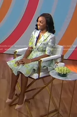 on Good Morning America on ABC was spotted wearing this floral plunging dress on Good Morning America on Feb 26 2024's episode. 's Dress is the Alessandra Dress by Ese Azenabor.