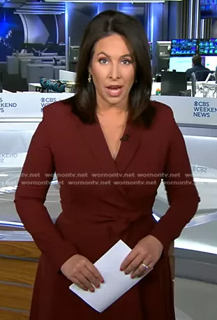 on CBS Evening News on CBS was spotted wearing this brown wrap dress on CBS Evening News on Feb 26 2024's episode. 's Dress is the Terreno Dress by Max Mara.