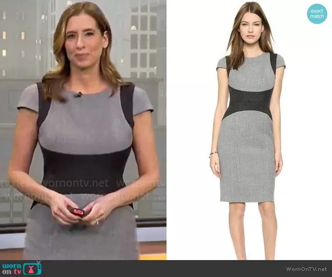 Stephanie Abrams on CBS Mornings on CBS was spotted wearing this Stephanie Abrams’ grye and black dress on CBS Mornings on Feb 27 2024's episode. Stephanie's Dress is the Patmos Sheath Dress by Club Monaco .