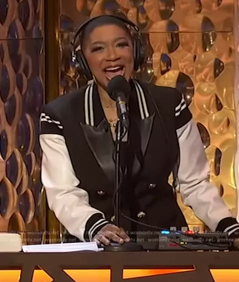 Deja Vu on Live with Kelly and Mark on Disney ABC Home Entertainment was spotted wearing this leather trim bomber blazer on Live with Kelly and Mark on Feb 27 2024's episode. Deja Vu's Blazer is the Blaire Bomber Blazer by Fashion Nova.