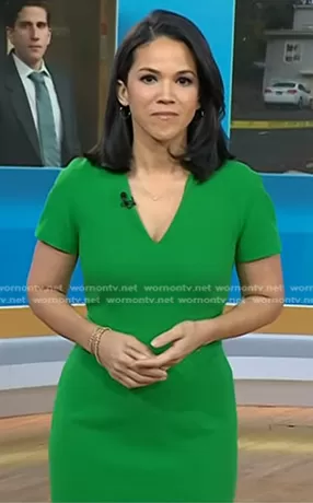 Laura Jarrett on Today on NBC was spotted wearing this green v-neck sheath dress on Today on Feb 28 2024's episode. Laura's Dress is the Bessa Sheath Dress by LK Bennett.