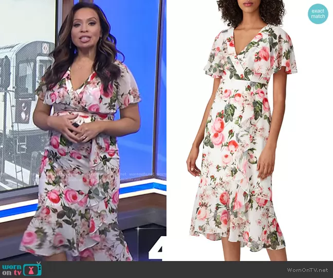 Adrianna Papell Floral Flutter Sleeve Dress worn by Adelle Caballero on Today