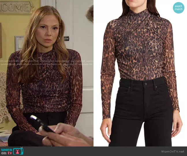 Ava Vitali (played by Tamara Braun ) on Days of our Lives on Peacock was spotted wearing this leopard top and beige coat on Days of our Lives on Feb 29 2024's episode. Ava's Top is the Tia Antia Print Top in Natural Brown by All Saints . Ava's Coat is the Agnes Belted Blindseam Coat by Reiss.