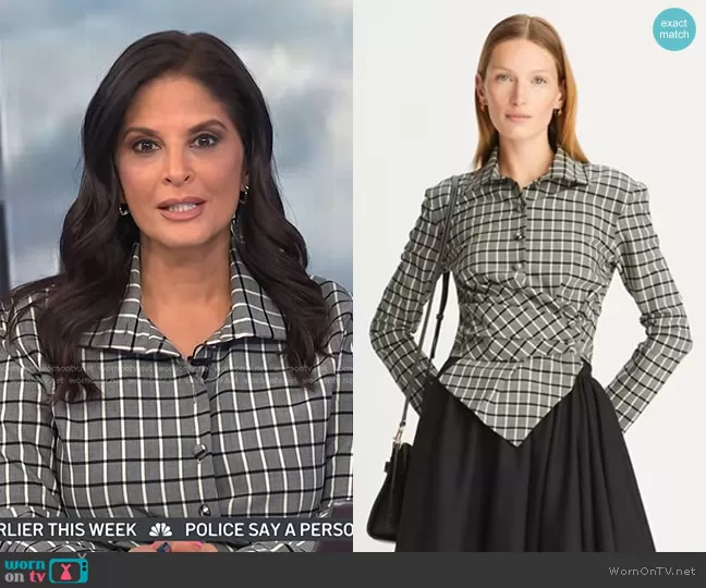Darlene Rodriguez on Today on NBC was spotted wearing this grey plaid blouse on Today on May 02 2025's episode. Darlene's Top is the Plaid Wrap Shirt by Tory Burch.