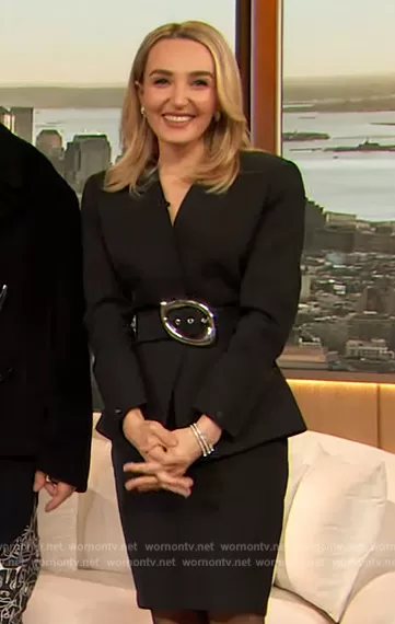 on The Drew Barrymore Show on CBS was spotted wearing this black belted blazer dress on The Drew Barrymore Show on Mar 01 2024's episode.