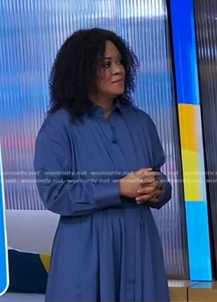 on Good Morning America on ABC was spotted wearing this blue shirtdress on Good Morning America on Mar 01 2024's episode. 's Dress is the Poplin Shirt Dress by Scanlan Theodore.