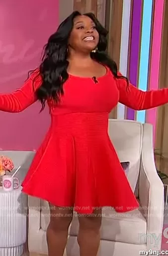 Sherri Shepherd on Sherri on FOX was spotted wearing this red ribbed mini dress on Sherri on Mar 04 2024's episode. Sherri's Dress is the Lisha Knit Fit & Flare Minidress by Cara Cara.