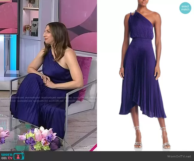 on Today on NBC was spotted wearing this purple pleated one-shoulder dress on Today on Mar 04 2024's episode. 's Dress is the Ruby Pleated Dress by A.L.C..