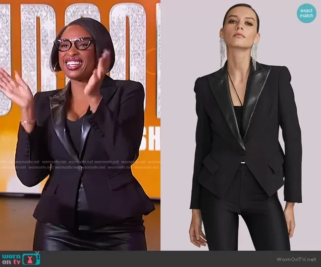 Jennifer Hudson on The Jennifer Hudson Show on FOX was spotted wearing this black leather-collar blazer on The Jennifer Hudson Show on Mar 05 2024's episode. Jennifer's Jacket is the Mara Vegan Leather Combo Crepe Blazer by Generation Love.