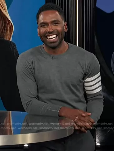 Justin Sylvester on E! News on E! was spotted wearing this gray sleeve stripe sweater on E! News on Mar 05 2024's episode. Justin's Sweater is the 4-Bar crew neck jumper by Thom Browne.