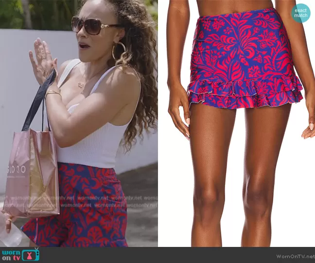 Ashley Darby on The Real Housewives of Potomac on Bravo was spotted wearing this red and blue floral mini skirt on The Real Housewives of Potomac on episode 'Fool's Gold' (8x15) in Mar 2024. Ashley's Shorts is the Pua Swim Skort by Patbo.