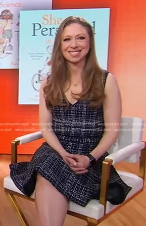 Prada Cotton and Wool Tweed Dress worn by Chelsea Clinton on Good Morning America