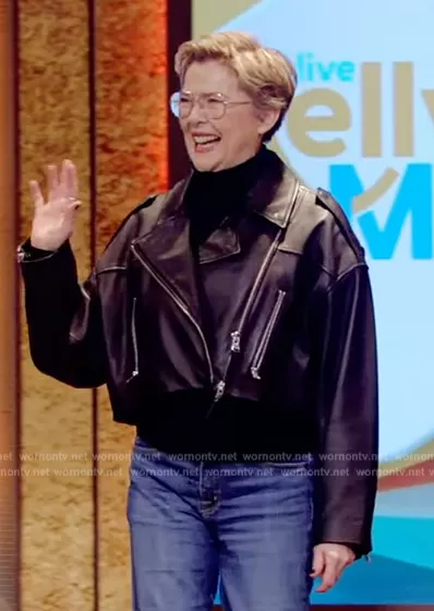 on Live with Kelly and Mark on Disney ABC Home Entertainment was spotted wearing this black cropped leather jacket on Live with Kelly and Mark on Mar 06 2024's episode. 's Jacket is the Remi Crop Leather Biker Jacket by Agolde.