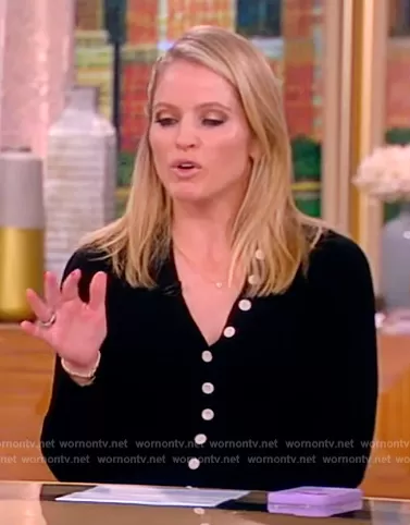 Sara Haines on The View on ABC was spotted wearing this button down knit midi dress on The View on Mar 06 2024's episode. Sara's Dress is the Cameron Knit Dress in Boucle Viscose by Proenza Schouler.