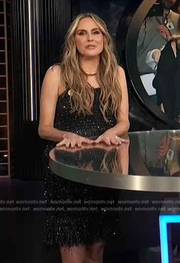 Keltie Knight on E! News on E! was spotted wearing this black tweed fringe top and skirt by E! News on Mar 06 2024's episode. Keltie's Top is the Fringed embellished bouclé-tweed top by Balmain . Keltie's Skirt is the Tweed Fringe Midi-Skirt by Balmain.