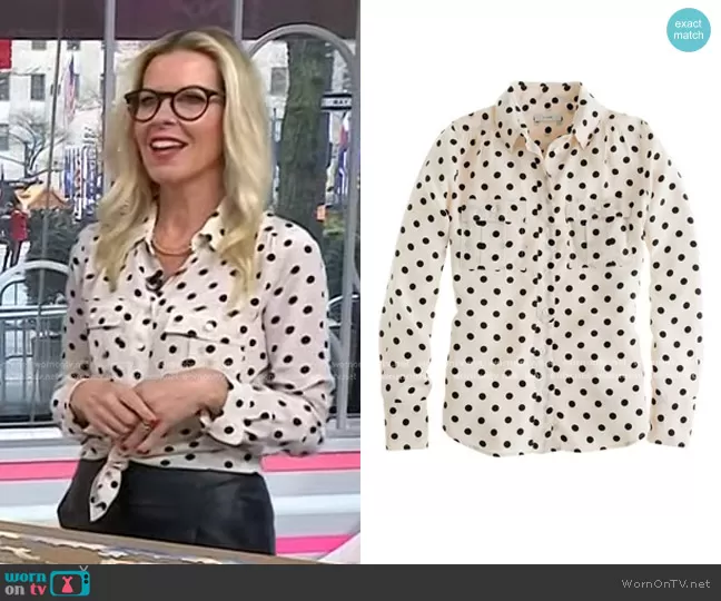 on Today on NBC was spotted wearing this white polka dot shirt on Today on Mar 06 2024's episode. 's Top is the Polka Dot Button Down by J. Crew.