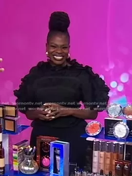 on Good Morning America on ABC was spotted wearing this black ruffled top on Good Morning America on Mar 07 2024's episode. 's Top is the Roslyn Ruffled T-Shirt by Cult Gaia.