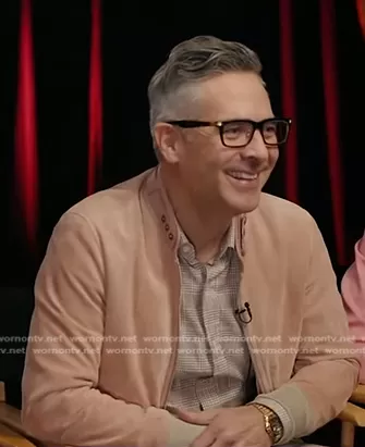 on Good Morning America on ABC was spotted wearing this pink suede jacket on Good Morning America on Mar 08 2024's episode. 's Jacket is the Stand Collar Suede Jacket by Tom Ford.
