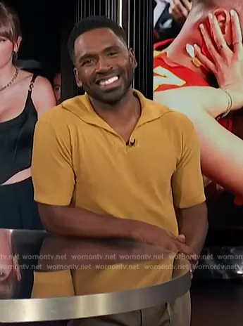 Justin Sylvester on E! News on E! was spotted wearing this yellow knit polo on E! News on Mar 08 2024's episode. Justin's Shirt is the Boxy Cotton Polo by Bode.