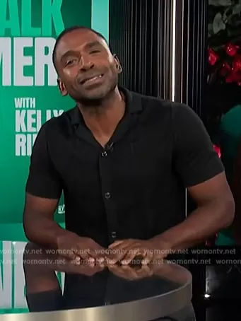 Justin Sylvester on E! News on E! was spotted wearing this black button down shirt on E! News on Jul 30 2024's episode. Justin's Shirt is the Fortune Cable Knit Cuban Collar Shirt by Reiss.