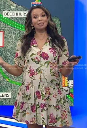 Adelle Caballero on Today on NBC was spotted wearing this white floral dress on Today on Mar 08 2024's episode. Adelle's Dress is the Floral Shift Dress by Great Jones.