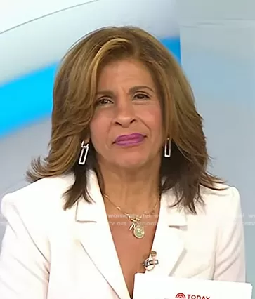 Hoda Kotb on Today on NBC was spotted wearing this rectangle link earrings on Today on Mar 20 2024's episode. Hoda's Earrings is the Crystal Link Earrings by Jennifer Miller.