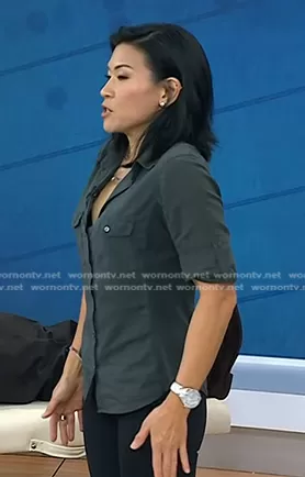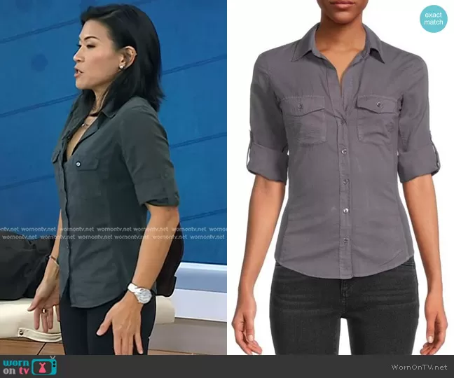 on Today on NBC was spotted wearing this grey shirt on Today on Mar 14 2024's episode. 's Top is the Solid Chest Pocket Shirt by James Perse . 's Shoes is the Campo Leather Sneakers by Veja.