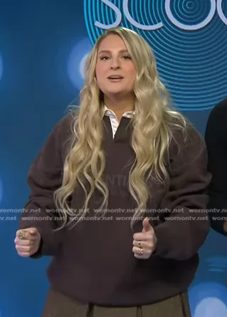 on Today on NBC was spotted wearing this brown rugby sweatshirt on Today on Mar 14 2024's episode. 's Sweater is the Henley Rugby Sweatshirt by Fear of God Essentials.