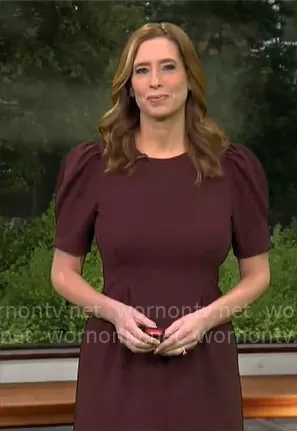 Stephanie Abrams on CBS Mornings on CBS was spotted wearing this Stephanie Abrams’ burgundy puff sleeve dress on CBS Mornings on Mar 15 2024's episode. Stephanie's Dress is the Puff Sleeve Dress by Express .
