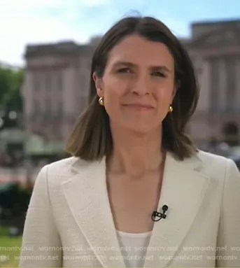 Molly Hunter on Today on NBC was spotted wearing this white tweed blazer on Today on May 28 2025's episode. Molly's Jacket is the Tweed Texture Blazer in Egret by Club Monaco.