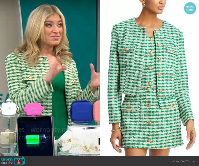 Ashley Bellman on CBS Mornings on CBS was spotted wearing this green tweed jacket on CBS Mornings on Mar 16 2024's episode. Ashley's Jacket is the Five Button Tweed Jacket by Aqua .