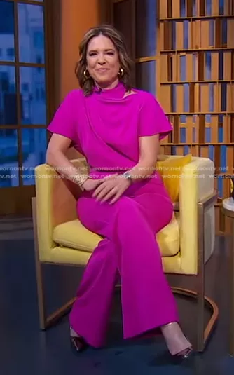 on Good Morning America on ABC was spotted wearing this fuchsia pink jumpsuit on Good Morning America on Mar 19 2024's episode. 's Jumpsuit is the Estella Jumpsuit in Vibrant Pink by Black Halo.