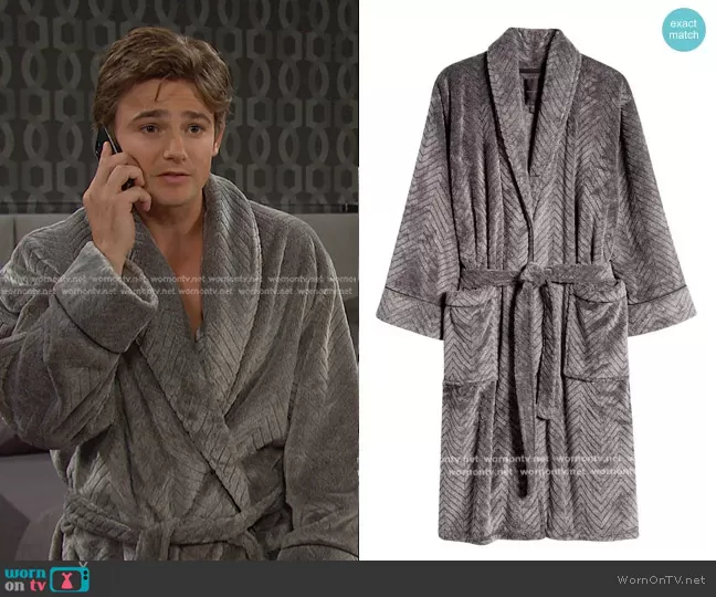 Chanel Dupree (played by Raven Bowens) on Days of our Lives on Peacock was spotted wearing this grey bathrobe on Days of our Lives on Mar 20 2024's episode. Chanel's Robe is the Herringbone Plush Fleece Robe by Daniel Buchler.